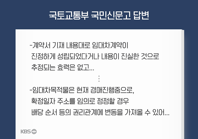 "집주인한테 못 받는 보증금을 경매 배당금을 통해 받아야 되는데 법원에서는 제가 전혀 다른 집에 계약을 한 걸로 보고 있는 거니깐, 배당금을 아예 돌려받지 못할 수도 있다고 말하더라고요."