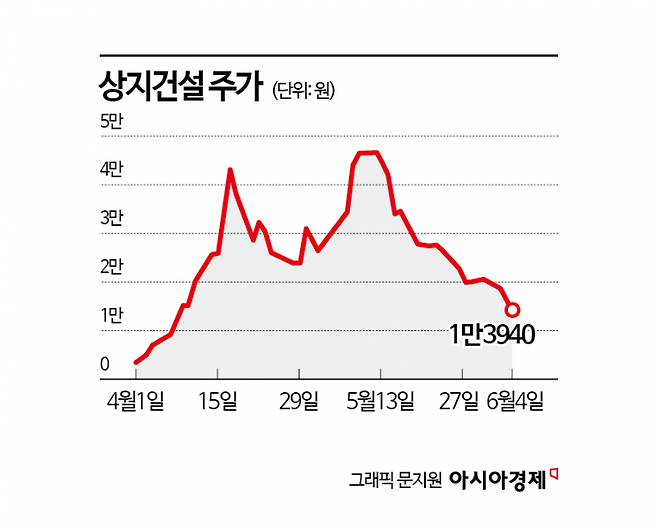 5일 금융투자업계에 따르면 지난달 2일부터 30일까지 한달 동안 개인투자자는 상지건설 주식을 339억원어치 순매수했다. 주당 평균 매수가격은 3만2709원으로 전날 종가 1만3940원보다 2배 이상 비싸다. 개인 투자자의 평균 평가손실률은 -57.4%에 달한다.
