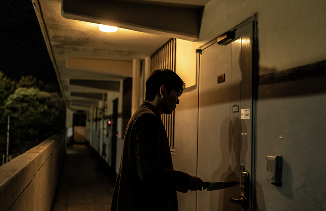 층간소음 문제로 매일같이 604호를 찾아오는 504호 남자를 연기한 그는 스틸 속 칼을 들고 주영을 위협하는 장면이 공개됐다. 그는 작품의 서스펜스를 극대화하고 강렬한 인상을 남길 예정이다.