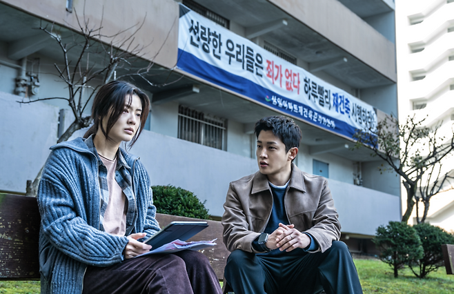 그는 주영과 함께 아파트 구석구석을 뒤지며 점점 그곳에서 벌어지는 기이한 사건들에 휘말리기 시작한다. 공개된 스틸에는 기훈이 주희를 찾는 전단지를 돌리거나 지하실을 살피는 모습이 담겨 있어, 그가 어떻게 이 사건의 중심으로 빠져들게 될지 궁금증을 자아낸다.