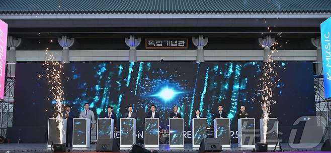 (천안=뉴스1) 이동원 기자 = 김태흠 충남도지사가 4일 천안 독립기념관에서 열린 ‘2025 천안 케이(K)-컬처박람회’ 개막식에 참석해 “케이(K)-컬처박람회가 세계박람회로 성장하고 천안이 케이(K)-컬처의 중심 무대로 자리매김하도록 아낌없이 지원할 것”이라고 강조했다.