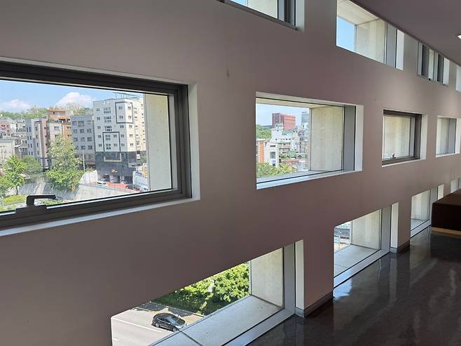 | ▲ 김영삼 도서관 6층 창가 창가 밖으로 보이는 세계의 어딘가에 세상 속 사람들이 각자의 역할을 존재를 살아가고 있다. 도서관에서 생각하는 것. |