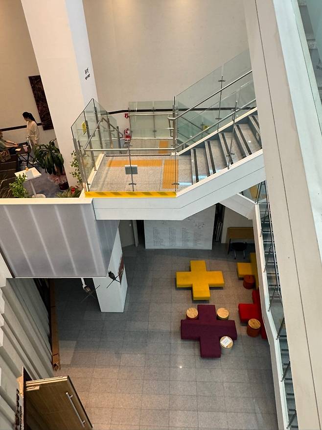 | ▲ 곰돌이 푸 웃음 이모지가 절로 생길 것 같은 푸우의 말. 도서관 계단 한벽을 차지하고 있다. |