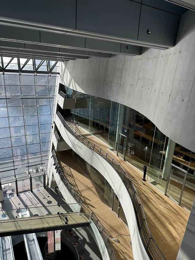 | ▲ 블랙다이아몬드 도서관에서 채광성을 극대화한 도서관은 유려한 선들이 흘러다닌다. 문득 이런곳에서 공부를 한다면 좀 더 잘되지 않을까 하는 생각을 한다. 원효대사가 떠오른다. |
