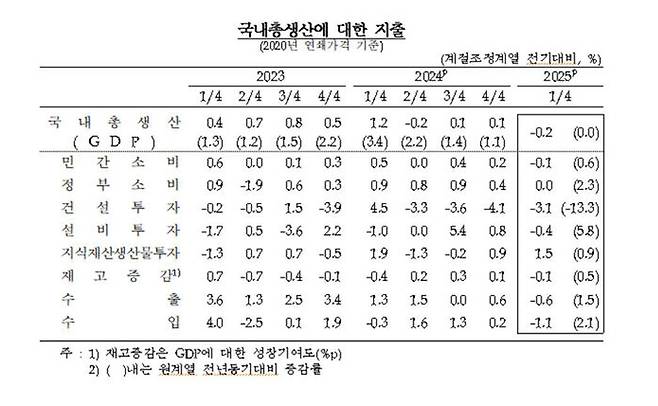 1분기 경제성장률 속보치와 같은 -0.2%…건설투자 -3.1%
