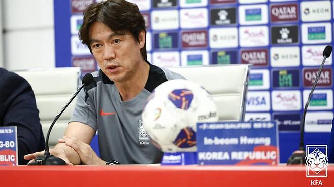 ▲ 5일(현지시간) 이라크 바스라국제경기장에서 열린 2026 FIFA 북중미 월드컵 3차예선 한국 대 이라크 공식 기자회견에서 홍명보 한국 대표팀 감독이 발언하고 있다.