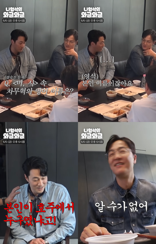 소지섭이 침묵하자 나영석 PD는 “본인 이름이잖아요. 본인 이름”이라고 말했고, 조한철은 “알 수가 없어”라고 두둔했다. 소지섭은 “기억이 안나”라며 웃었다.