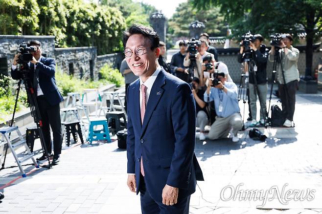 | ▲ 이재명 정부 초대 총리로 지명받은 김민석 전 더불어민주당 의원이 5일 오전 서울 종로구 금융감독원 연수원에서 첫 출근을 하고 있다. |
