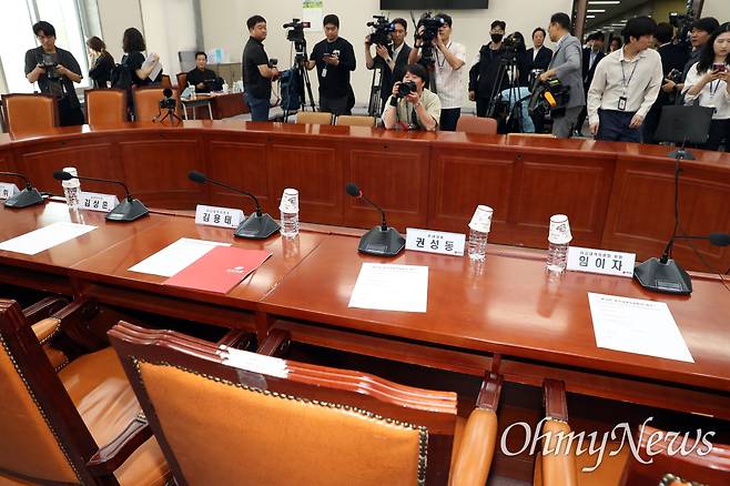 | ▲ 5일 서울 여의도 국회에서 열릴 예정이었던 국민의힘 비상대책위원회의가 비공개로 전환, 회의장 내 위원들의 자리가 비어 있다. |
