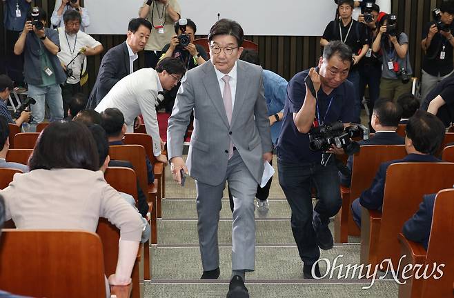 권 원내대표는 대선 패배 직후부터 터져나온 친한계의 사퇴 압박을 이겨내지 못했다. 이날 오전 의원총회 전부터 "사퇴 쪽으로 중지가 모이고 있다"는 말이 나온 상태였다.