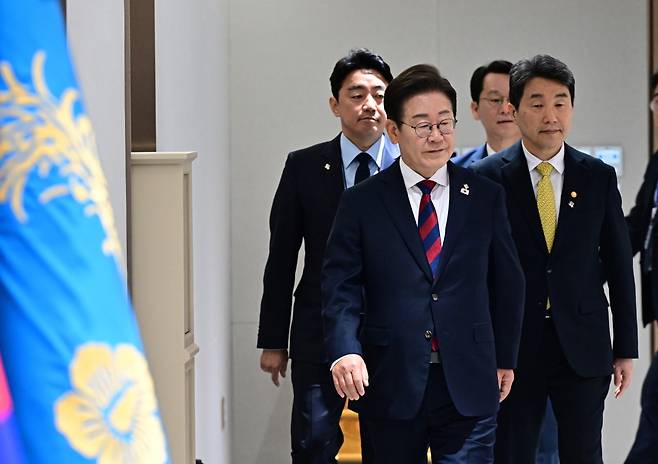 이재명 대통령이 5일 서울 용산 대통령실청사에서 취임 후 열린 첫 국무회의에 참석하고 있다.