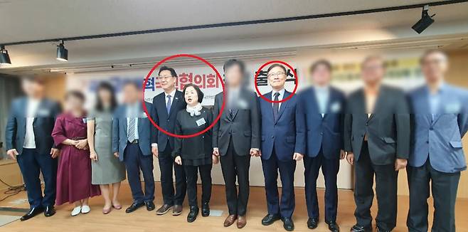 | ▲ 손효숙 리박스쿨 대표 옆 김대남 전 대통령실 시민소통비서관 직무대리. 2023년 10월 국가교육개혁국민협의회 출범식 당시 사진이다. |