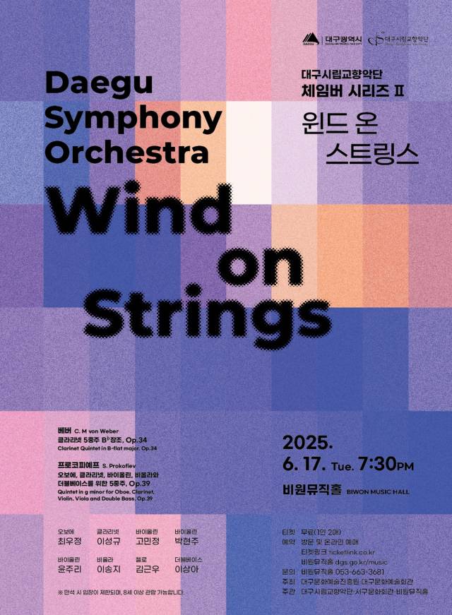 이번 공연은 '윈드 온 스트링스(Wind on Strings)'라는 부제로 진행되며, 낭만주의 작곡가 베버와 근현대 음악의 거장 프로코피예프의 5중주 작품이 연주된다.