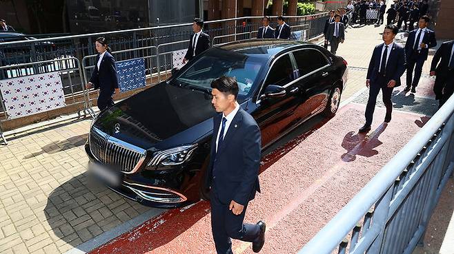 ▲ 이재명 대통령과 김혜경 여사가 탑승한 의전 차량이 4일 인천 계양구 사저에서 첫 공식 일정을 위해 출발하고 있다.