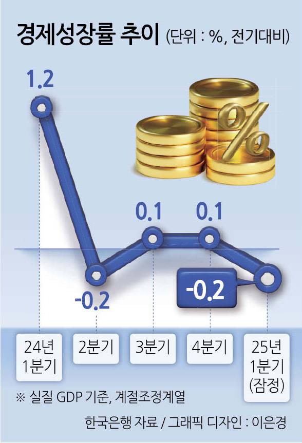 이제 막 첫발을 뗀 이재명 정부가 1분기 ‘역성장’ 성적표를 받아들었다. 건설투자를 중심으로 하는 내수 부진 속에 수출까지 휘청이며 반등에 실패했다. 국민소득도 제자리걸음을 했다. 교역조건 악화로 실질무역손실이 확대된 영향이 컸다. 이대로라면 11년째 갇힌 1인당 국민소득 3만달러의 늪을 벗어나기는커녕 더 깊이 빠질지 모른다는 우려가 나온다.