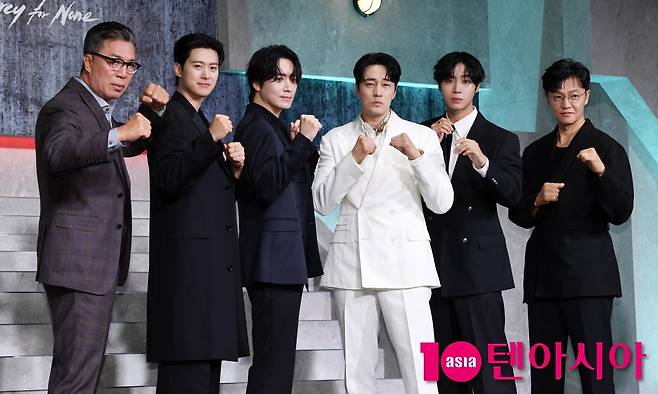[텐아시아=조준원 기자]배우 소지섭, 공명, 추영우, 안길강, 조한철, 이준혁이 5일 서울 중구 앰배서더 서울 풀만 호텔에서 열린 넷플릭스 시리즈 <광장> 제작발표회에 참석해 포즈를 취하고 있다.