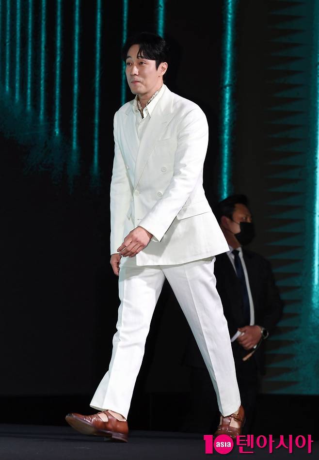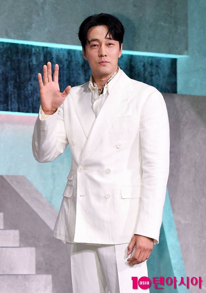 배우 소지섭이 5일 서울 중구 앰배서더 서울 풀만 호텔에서 열린 넷플릭스 시리즈 <광장> 제작발표회에 참석해 포즈를 취하고 있다. 광장>