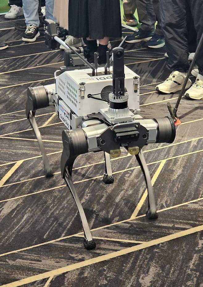 방 원장은 또 시각장애인용 안경을 쓴 채 AI 안내로봇 '에디'를 데리고 단상으로 내려 오기도 했습니다. 에디는 4족 보행 기반 실시간 음성 안내와 대화 기능을 탑재한 멀티모달 AI 로봇으로 신호등이나 사람 유무를 알려주는 기능을 갖췄습니다.