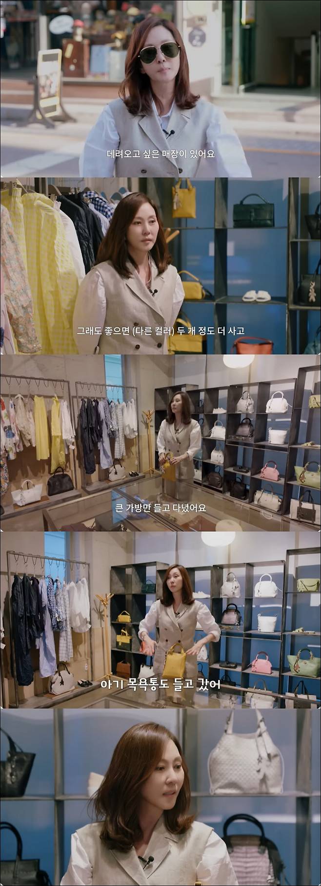 앵커 역을 맡았던 '미스티'에서 들었던 가방을 다시 들어본 김남주. 직원은 "실제로 드라마가 나온후에 아나운서 분들의 구매가 많았다"고 김남주의 파급력을 인정했다.