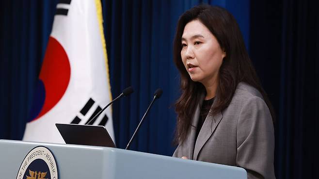 ▲ 강유정 대통령실 대변인이 5일 서울 용산 대통령실 청사에서 현안 브리핑을 하고 있다.