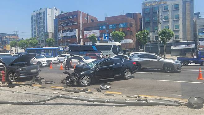이 사고로 차량 운전자 1명이 다쳐 병원에서 치료를 받고 있습니다.