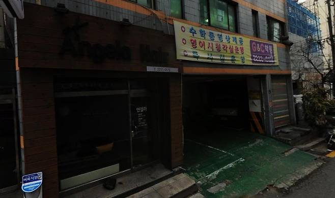 건물의 외장재는 세라믹 타일로 마감되어 있었으며, 회색 계열 타일 위에 주황색 띠 패턴이 반복되는 형태는 1990년대 상업용 건물에서 흔히 볼 수 있는 전형적인 디자인이었습니다.