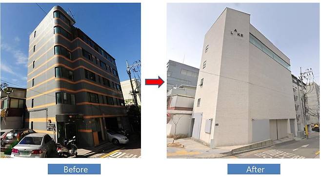 기존의 노후되고 복잡했던 외관은 사라지고, 단순하지만 강한 건축적 존재감을 갖춘 건물로 재탄생하면서 상업시설, 카페, 오피스 등 다양한 용도로 활용 가능한 유연한 공간으로 거듭났습니다. 이러한 리모델링은 단순한 외관 개선을 넘어, 건물의 브랜드 가치와 수익 구조 자체를 전환하는 전략적인 프로젝트로 평가할 수 있습니다.