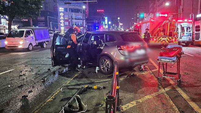 B 씨 차량은 새벽 4시 30분쯤 왕복 8차선 도로에서 중앙선을 넘어 역주행하다가 마주 오던 SUV를 들이받았습니다.