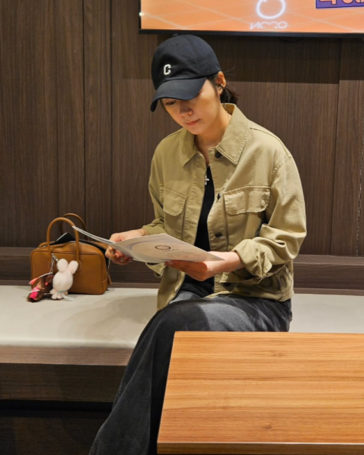 공개된 사진 속 한가인은 어딘가에 앉아 책자를 보고 있으며 크롭 디자인의 재킷과 데님 팬츠, 검은색 캡을 쓴 채 캐주얼한 패션을 완성했다.