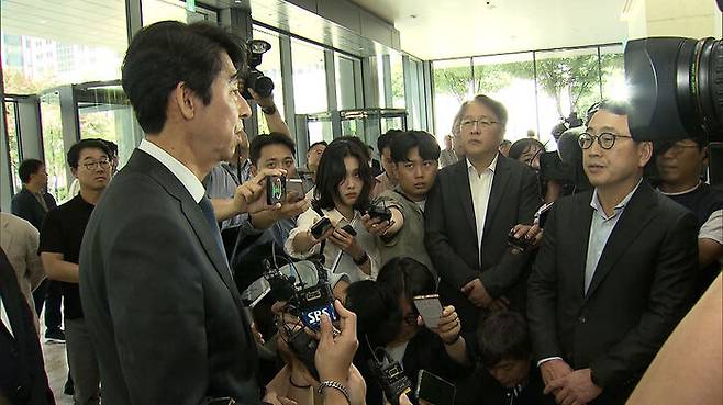 이에 유 사장은 "최 회장은 다른 일정으로 있지 않다"며 "이 부분은 최 회장이 아니라 저와 이사회가 결정할 부분이다. 양해해달라"고 답했습니다.