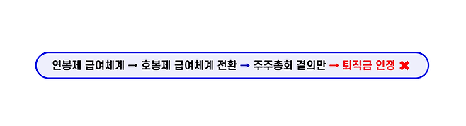 그러나 현장 상담을 진행하다 보면, 많은 법인이 단순히 주주총회에서 임원의 급여체계를 연봉제에서 호봉제로 전환한다는 의결만 있으면 다시 퇴직금을 받을 수 있다고 잘못 생각하고 있어 낭패를 보는 경우가 많습니다. 이에 세무조사에서 호봉제 전환을 인정해 주는 중요한 조건과 내용을 설명 드리겠습니다.