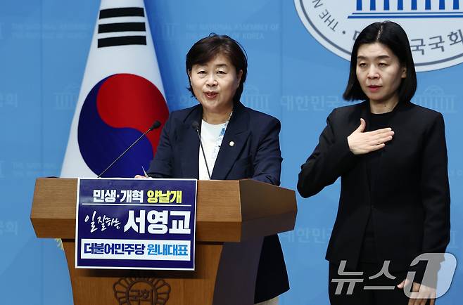 (서울=뉴스1) 김민지 기자 = 서영교 더불어민주당 의원이 5일 서울 여의도 국회 소통관에서 제22대 국회 제2기 민주당 원내대표 출마를 선언하고 있다. 2025.6.5/뉴스1