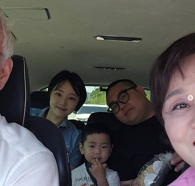 이경실은 "남편과 나, 수아 보승 손자 이훈이가 한 차를 타고 갔다. 며느리는 집에서 인사 했다며