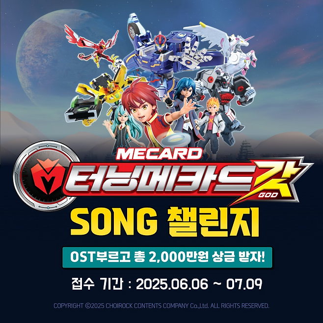 6월6일부터 다음달 9일까지 응모 가능한 이번 챌린지는 '터닝메카드 갓'의 오프닝 곡 ‘테이크 더 링(Take the Ring)'을 자신만의 개성으로 커버한 영상을 SNS에 업로드 하는 방식으로 진행되며, 연령 제한 없이 대한민국 국민이면 누구나 참여 가능하다.