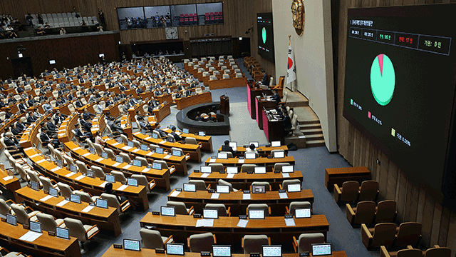 국회는 오늘(5일) 오후 본회의를 열고, 검사징계법 개정안을 재석의원 202명 중 찬성 185명, 반대 17명으로 통과시켰습니다.
