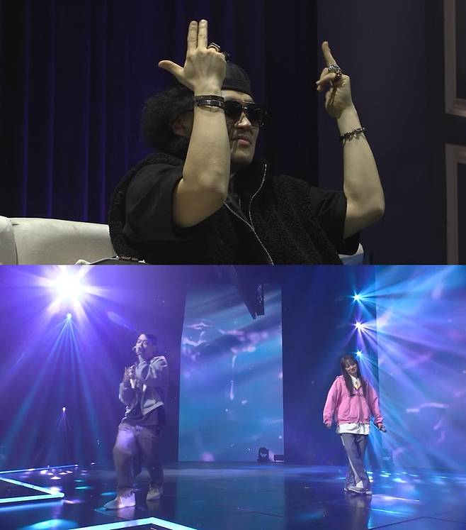 더 콰이엇은 "노래를 부르지 말고 무대 위에서 걸어 다니는 것부터 해보자"며 세심한 디렉팅으로 뷰를 이끌고, 드디어 두 사람은 2차 경연 날 '힙합 컬래버' 미션의 첫 순서로 무대에 오른다.
