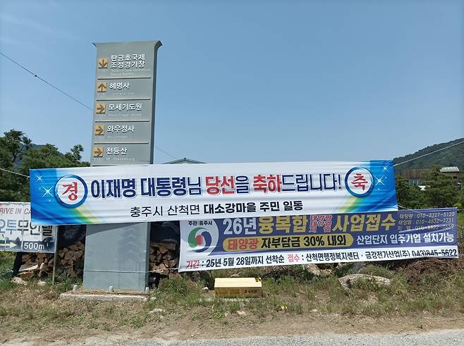 | ▲ 이재명 대통령 당선을 축하하는 뜻에서 대소강마을 주민이 함께 내건 펼침막 |