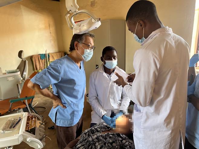 16.5㎡(5평) 남짓한 진료소 내부에는 최신식 치과 치료 의자 하나가 놓여 있었다. 20대 아프리카 청년 두 명이 진료소를 찾은 한 중년 여성의 치아를 이리저리 살펴보며 진찰했다. 강 선교사는 그들 옆에 서서 틈틈이 조언을 건넸다.