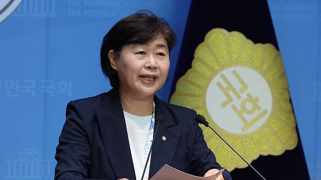 ▲ 더불어민주당 서영교 의원이 5일 국회 소통관에서 원내대표 출마를 선언하고 있다.