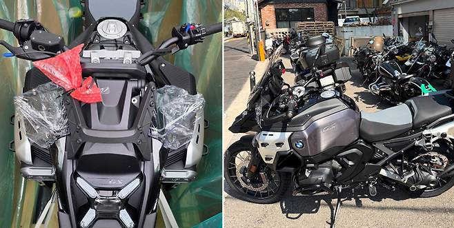함께 공개된 바이크 사진에서는 BMW GS 시리즈로 추정되는 대형 어드벤처 바이크가 눈에 띈다. 새 바이크의 세련된 디자인과 고급스러운 외관이 인상적이며, 출고 직후의 모습과 도로 위에 주차된 모습이 함께 담겨 있어 바이크 오너로서의 설렘이 고스란히 전해진다.