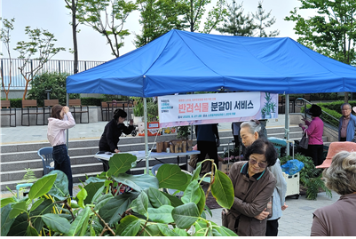 이번 서비스는 운영 및 관리기업인 에스씨 및 자이에스앤디와 함께 진행했다. 입주민 반려식물에 대해 전문적인 분갈이 지원은 물론, 식물 건강 진단과 맞춤형 관리 방법도 함께 제공했다. 특히 분갈이에 필요한 흙과 비료 등 모든 재료를 무상으로 제공했으며 식물별 특성을 고려한 1:1 맞춤형 관리 조언도 진행했다.