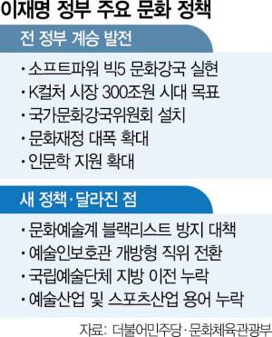 지난 정부 때 강조됐던 ‘예술 산업’ 용어가 공약에서 사라진 것도 특기할 만하다. 이 용어에 거부감을 가진 예술인들의 반발을 의식했다는 지적이 나온다. ‘스포츠 산업’이라는 용어도 보이지 않는다.