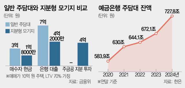 집을 사려는 ‘영끌’ 대출이 늘면 집값이 뛰고 이에 다시 대출 수요가 커지는 악순환을 끊어야 한다는 판단도 작용했다. 김병환 금융위원장도 지난달 정부서울청사에서 열린 기자 간담회에서 “가계대출을 관리하는 입장에서 집을 구매하는 데 자금 조달에 애로가 있는 분에게 어떻게 부담을 덜어드릴까 하는 취지에서 (지분형 모기지 도입이라는) 정책적 제안을 한 것”이라고 말했다. 지분형 모기지를 통해 중장기적인 가계부채 관리까지 가능하다는 취지로 언급한 것이다.