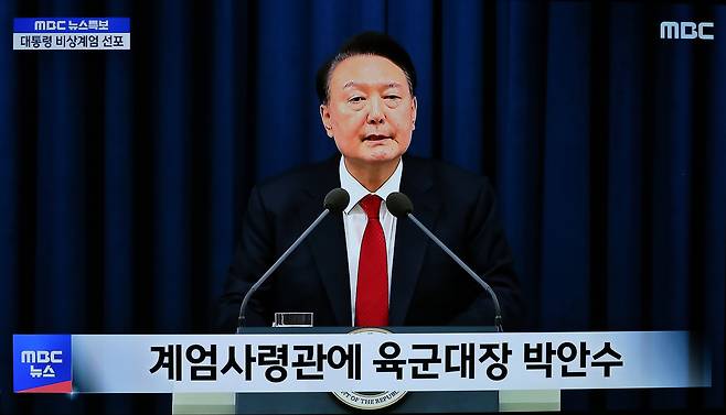 | ▲ 2024년 12월 3일 윤석열 대통령이 서울 용산 대통령실 청사에서 비상계엄을 선포하고 있다.(텔레비젼 촬영) |