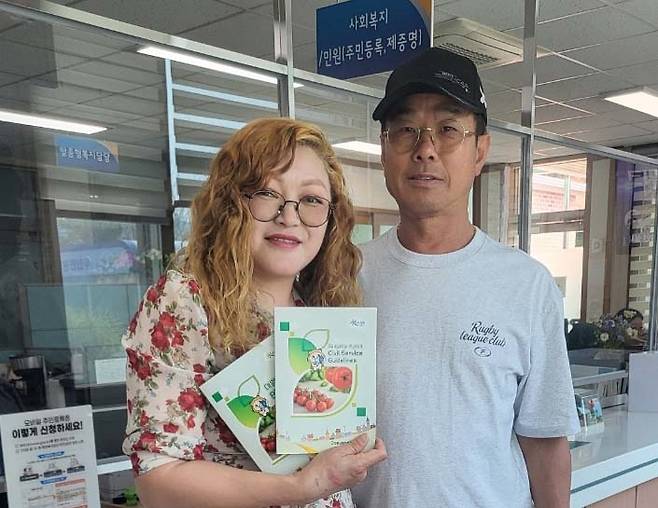 | ▲ 대양면으로 전입신고와 체류지변경 신청을 함께한 장만수?막스토바메리예트(카자흐스탄) 부부 |