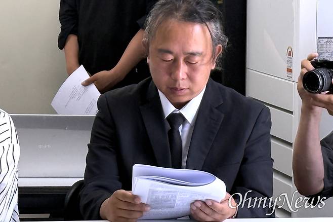 | ▲ 태안화력 고 김충현 비정규직 노동자 사망사고 대책위원회가 5일 오후 1시 참여연대 2층 아름드리홀에서 조사발표 기자회견을 열었다. 기자회견에 참석한 유족(고인의 형)이 자료를 읽고 있다. |
