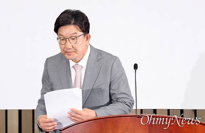 | ▲ 원내대표직 사퇴 선언한 권성동 권성동 국민의힘 원내대표가 5일 서울 여의도 국회에서 열린 의원총회에서 원내대표직 사퇴를 선언한 뒤 나서고 있다. |