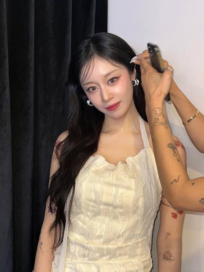 공개된 사진 속 박지연은 화이트 드레스를 입고, 팔과 손에 화려한 꽃무늬 타투를 그려 넣어 강렬하면서도 세련된 이미지를 연출했다.