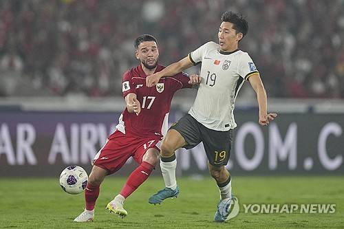 중국은 5일(한국시간) 인도네시아 자카르타의 겔로라 붕 카르노 스타디움에서 열린 인도네시아와의 2026 국제축구연맹(FIFA) 북중미 월드컵 아시아 지역 3차 예선 C조 9차전 전반전을 0-1로 마쳤다.