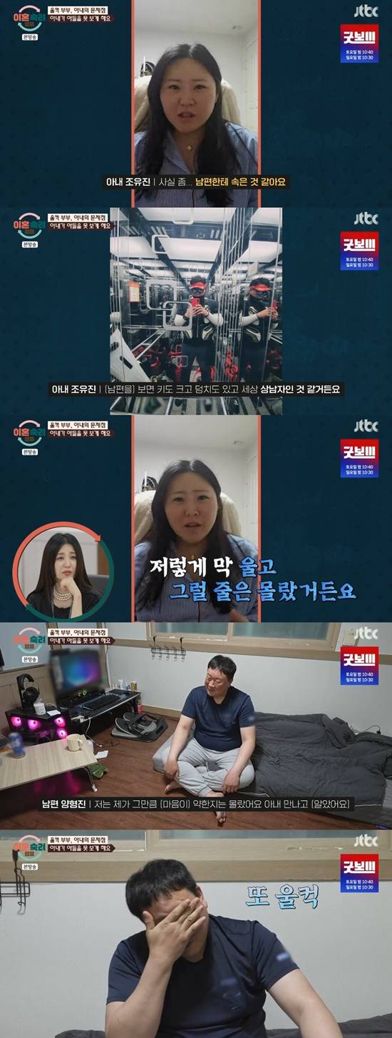 (엑스포츠뉴스 문채영 기자) '극과 극' 부부의 남편이 눈물을 흘렸다.